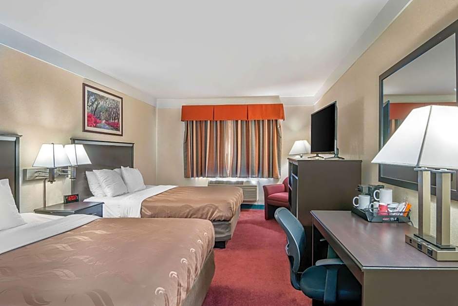This guestroom includes a roll-in shower and wheelchair access. A flat-screen satellite TV, a small refrigerator and a microwave are provided, as are a hairdryer, coffeemaker and ironing facilities.